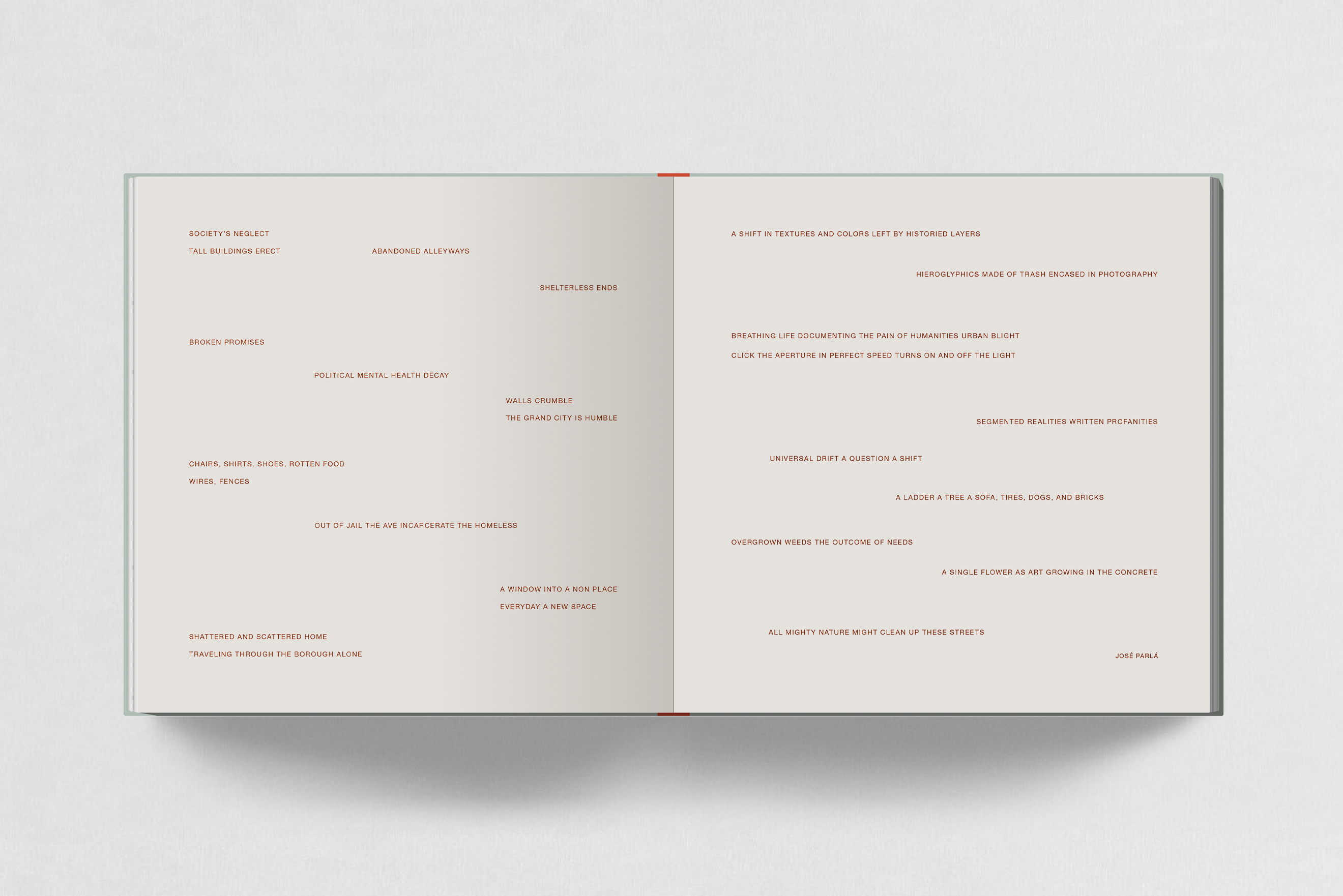 This book by Japanese photographer Yasuyuki Takagi documents an empty space in Brooklyn, New York. At first glance it appears to be an empty, unused space, but in fact artists, homeless people and animals come and go as they please. There is freedom there. However, one day the space disappears and a new building stands. This book documents the beauty that appears and disappears for such a brief moment.